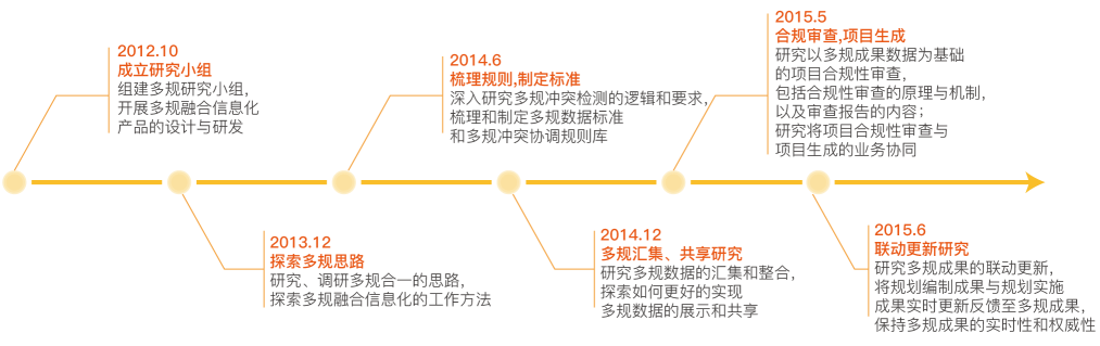 2012年下旬,響應(yīng)政策號(hào)召,我們組建了多規(guī)融合業(yè)務(wù)研究小組,并啟動(dòng)了多規(guī)合一信息化工作的前期研究與調(diào)研。于2014年初,上海數(shù)慧形成了一套較完善的數(shù)慧多規(guī)融合解決方案。2015年5月,研制并發(fā)布了“數(shù)慧多規(guī)融合信息平臺(tái)”。此后,經(jīng)過與眾多專家的廣泛交流,結(jié)合多個(gè)地區(qū)多規(guī)合一空間信息平臺(tái)建設(shè)項(xiàng)目的實(shí)施經(jīng)驗(yàn),我們對(duì)多規(guī)融合有了更加深入的理解,數(shù)慧多規(guī)融合解決方案也得以持續(xù)完善。