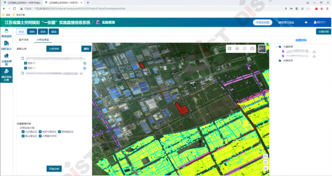 基于全省國土空間規(guī)劃“一張圖”,建立專項規(guī)劃的橫向銜接機制,提供多場景的合規(guī)性審查,支撐交通、水利、風(fēng)景區(qū)、開發(fā)區(qū)等合規(guī)性審查,提前發(fā)現(xiàn)沖突、矛盾協(xié)調(diào),保障發(fā)展,共繪“多規(guī)合一”藍(lán)圖。
